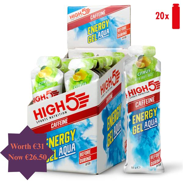 High 5 20 Pack Citrus Energy Gel Aqua Caffeine Bundle