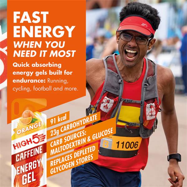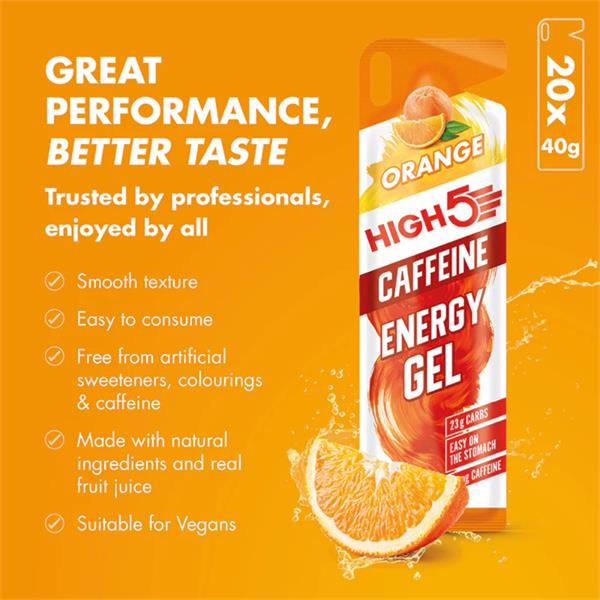 High 5 20 Pack Orange Energy Gel Caffeine Bundle