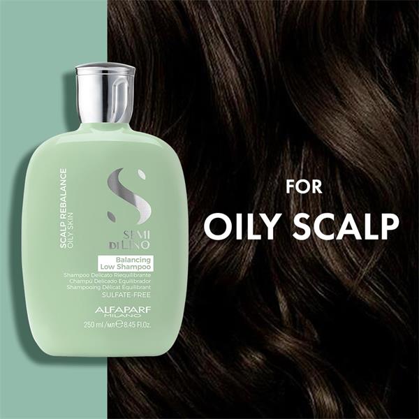 The Semi Di Lino Rebalance Low Shampoo is recommended for dry scalps suffering from oiliness and flaking. It gently cleanses and purifies to normalize the scalp.