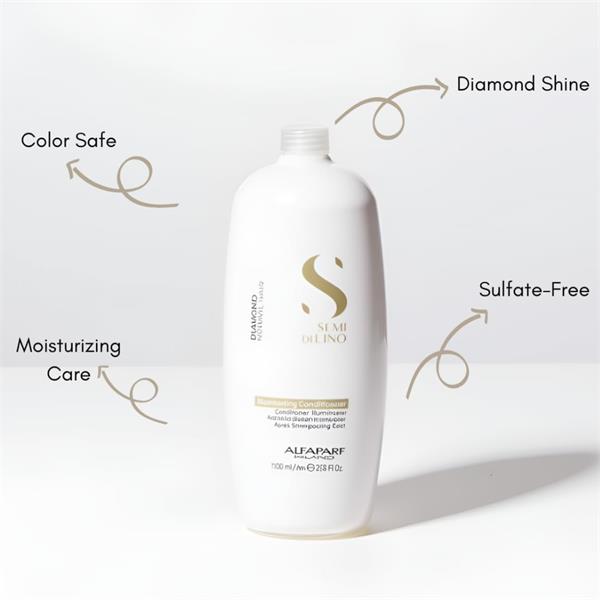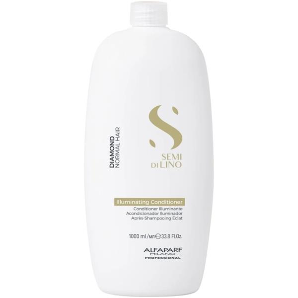 Alfaparf Milano Semi Di Lino Diamond Illuminating Conditioner (1000ml) is a moisturising conditioner which weightlessly transforms dull hair, imparting a soft feel and stunning, glossy finish. Free from sulphates, parabens and harmful ingredients, it combines the benefits of three unique complexes to produce dazzling results. The Shine Fix Complex smooths the hair fibre with fatty acids, derived from Linseed Extract.