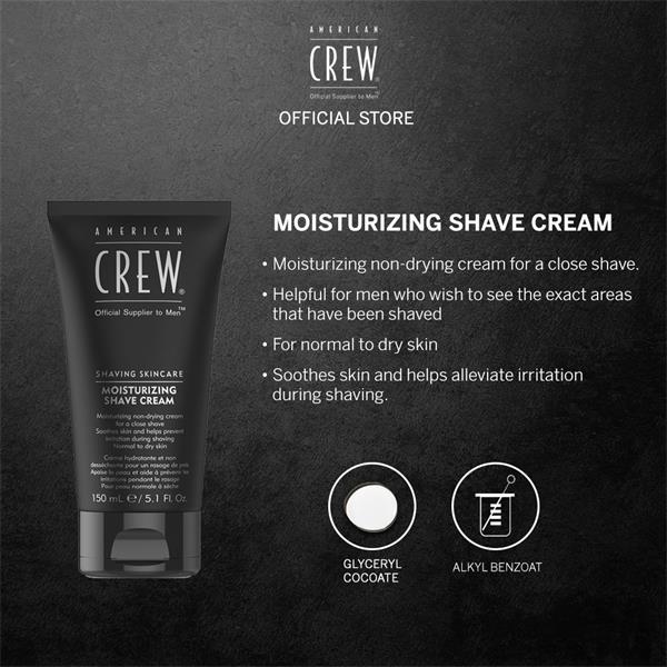 American Crew's moisturizing shaving cream is suitable for all skin types, offering a smooth, close shave while preventing dryness. This non-drying formula helps alleviate irritation, providing a comfortable shave every time. Designed to hydrate and protect the skin, our moisturizing shaving cream ensures a soothing, irritation-free experience, leaving your skin feeling soft and refreshed after each use. Perfect for all men looking for a high-quality shaving solution.