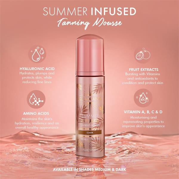 Summer in a bottle! Transform your tanning game with our Summer Infused Tanning Mousse. Our innovative formula combines the best of tanning and skincare, featuring a supercharged DHA and organically derived Tan Enhancers that promise a Bella glow in Medium and Dark shades.