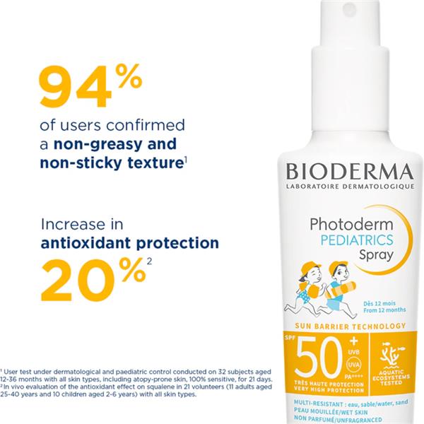 SPF50+ UVA 25. Very high broad spectrum protection: UVB, short and long UVA. Face, body. Hydration 8h. Easy application, fast absorption. Invisible and non-sticky. Very good tolerance. Tested under pediatric, dermatological and ophthalmological control.