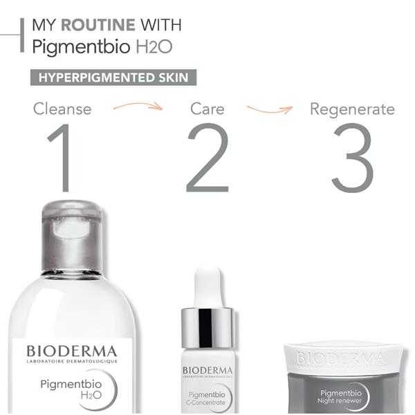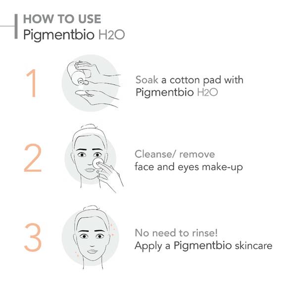 Apply Bioderma Pigmentbio Micellar Water, 2 times a day, to your face and eye contour, with a cotton pad, gently tapping.