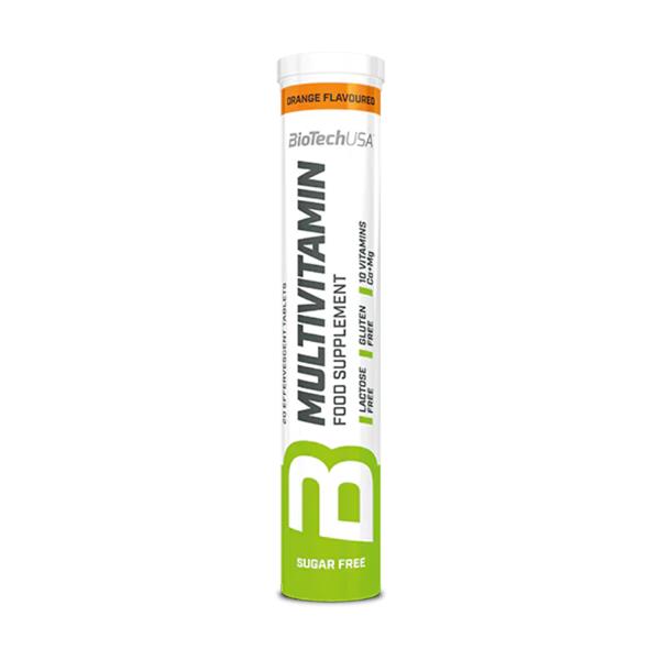 BioTech USA Multivitamin - multivitamin complex enriched with calcium and magnesium in effervescent tablets Support your body and sparkle your everydays with BioTechUSA Multivitamin effervescent tablets containing 10 kinds of vitamins and 2 kinds of minerals. Due to its complex composition, it is the ideal choice if besides the active lifestyle and balanced diet you would like to support the optimal operation of your body additionally.