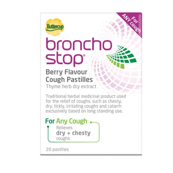 BronchoStop Cough Pastilles contain a combination of ingredients not commonly found in other cough products used to relieve any cough: dry, tickly, chesty, mucus or catarrh. BronchoStop is a traditional herbal medicine used to relieve any cough, based on traditional use only.