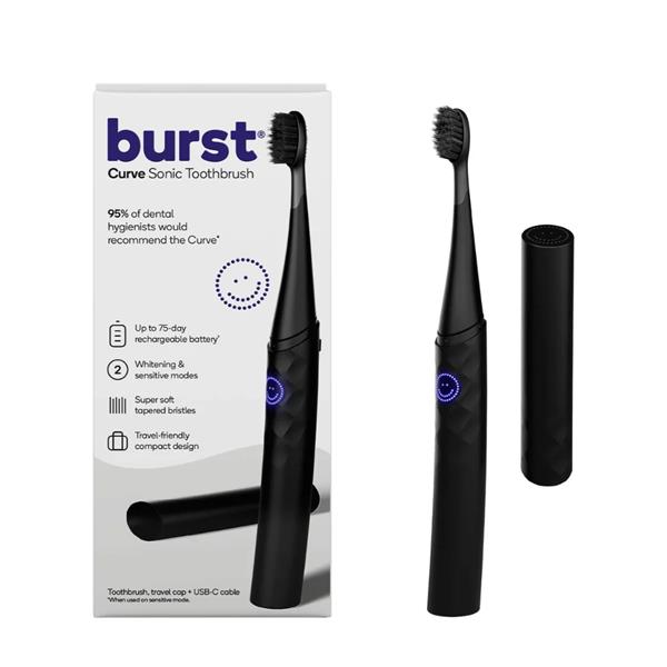 Featuring Burst's signature super-soft tapered bristles to whiten and reduce gum bleeding up to 3x*. Plus a four week battery life, three customized modes, and two-minute time - this brush delivers an incredible clean, every time.
