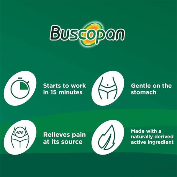 The active ingredient in Buscopan, Hyoscine Butylbromide, belongs to a group of medicines called "anti-spasmodics". Abdominal cramps occur when the muscles in the wall of your stomach or bowel tighten irregularly. Buscopan works by relaxing these tightening muscles, providing predictable relief from the sharp, stabbing pains associated with digestive sensitivity.