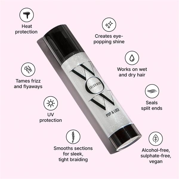 Add mirror-like sheen to your style with Color WOW's Pop and Lock High Gloss Finish, a weightless hair serum that delivers the conditioning benefits of an oil and the radiance-reviving properties of a serum.