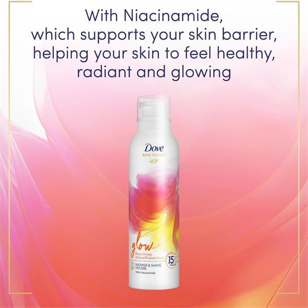 Dove Glow Blood Orange & Spiced Rhubarb Shower & Shave Mousse (200ml) is a soft, delicate shower mousse which lathers into a rich foam which is perfect not only for use as a body wash but also for shaving while in the shower for a truly pampering experience. It's rich, whipped texture provides creamy coverage, perfect for giving your body 15 minutes of daily self-care.