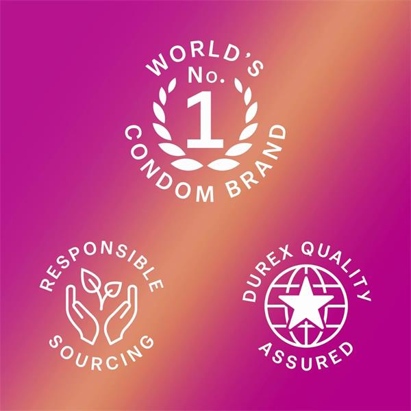 Durex Pleasure Me condoms feature a unique texture combination of ribs and dots, to maximise stimulation for both partners and provide greater fit, feel and comfort.