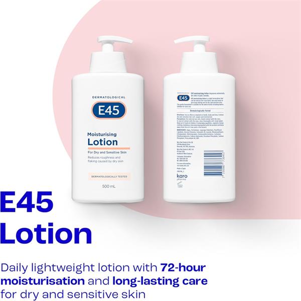E45 Moisturising Body Lotion is a light daily dry skin moisturiser that's ideal for everyday use all over the body, to keep your skin feeling soft, supple and hydrated.