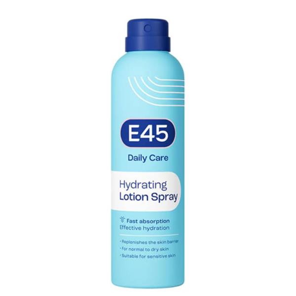 E45 Daily Care Hydrating Lotion Spray delivers intense hydration with a clinically proven formula that locks in moisture. Designed for convenience, this easy-to-apply spray absorbs quickly without leaving a greasy feel, leaving your skin feeling soft, smooth, and protected all day long. Fragrance-free and dermatologically tested, it’s suitable for dry, sensitive, and eczema-prone skin.