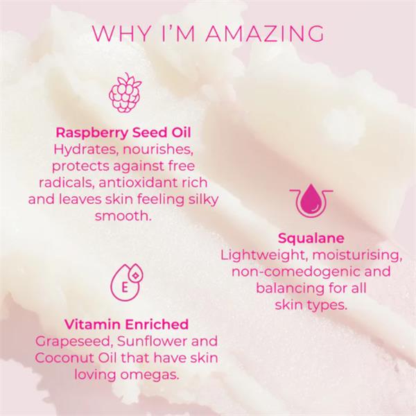 Raspberry Seed Oil – hydrates, nourishes, protects against free radicals, antioxidant-rich, and leaves skin feeling silky