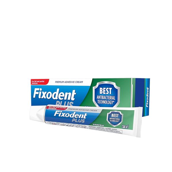 Fixodent Plus Dual Protection Denture Adhesive 40g. Minty flavour to ensure a subtle pleasant taste in the mouth, without affecting the taste of food or drinks. Fixodent Denture Adhesive Cream with fresh mint flavour specially designed for best food seal and antibacterial.