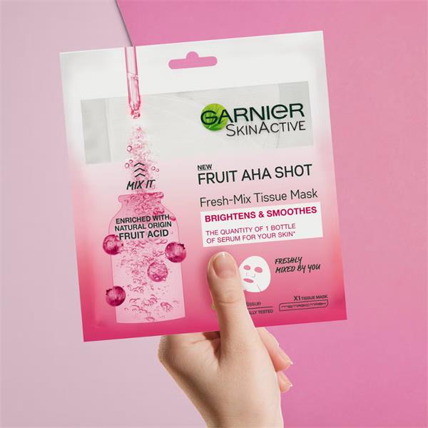 Discover our Fresh-Mix Tissue Mask! Freshly mixed by you when you need it, it gives your skin a hydrating shot enriched with Fruit AHAs for skin that looks suppler and smoother.