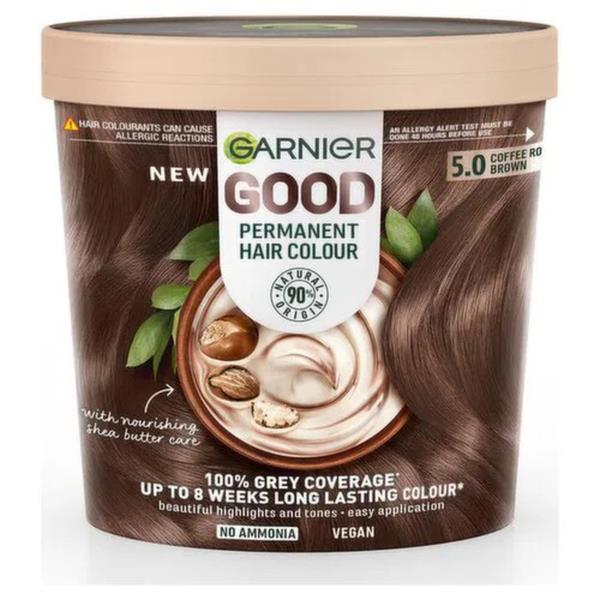 Experience the new simple way to permanently colour your hair at home with Garnier Good Permanent Hair Colour. GOOD is a 90%* natural origin colour kit that includes a silk and shine conditioner packed with shea butter that leaves your hair healthier and rejuvenated. The hair colour is non-drip and has a thick mask-like texture that allows you to apply it as you would a mask, leaving you free to move around while your colour develops. Good delivers 100% grey coverage, with added beautiful highlights and tones that last up to 8 weeks. Free from ammonia, silicones or alcohol, Good is gentle on hair and scalp and is infused with the luxurious fragrance of sandalwood, Goji berry & orchid, which will leave you feeling pampered and refreshed