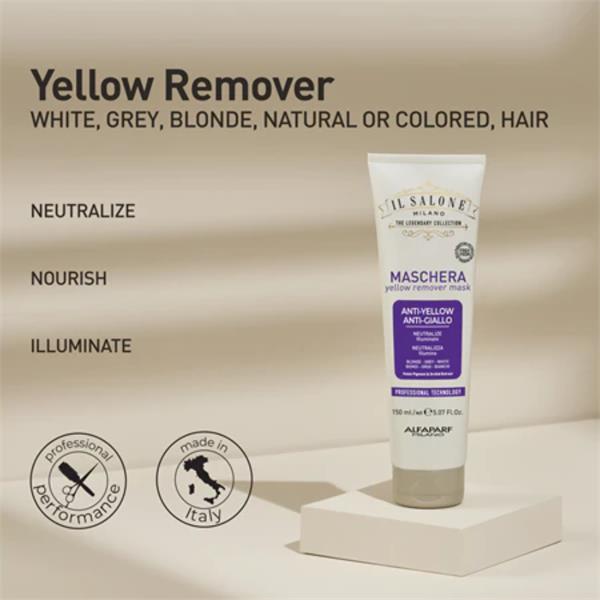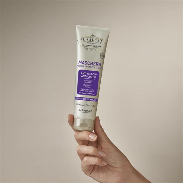 Professional anti-yellow mask. Formulated with Violet Care System, it neutralises unwanted yellow tones and enhances natural radiance. Deeply nourishes hair, leaving it soft and silky to the touch. Purple formula.