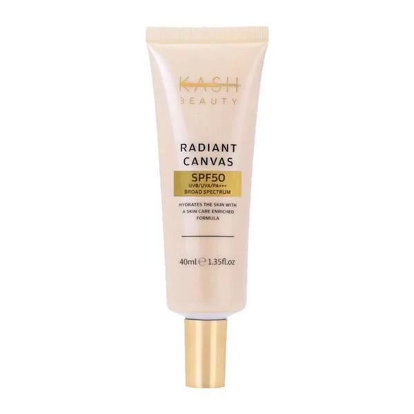 Kash Beauty Radiant Canvas Primer SPF 50 is your new secret weapon for a flawless makeup base. This luscious, hydrating primer features a creamy, lightweight formula that plumps, smooths, and preps the skin for makeup application. Enriched with Hyaluronic Acid and Ceramides, it locks in moisture while Avocado Oil and Glycerin nourish for a radiant glow. SPF 50 protects the skin from broad spectrum UV damage, preventing premature signs of ageing.