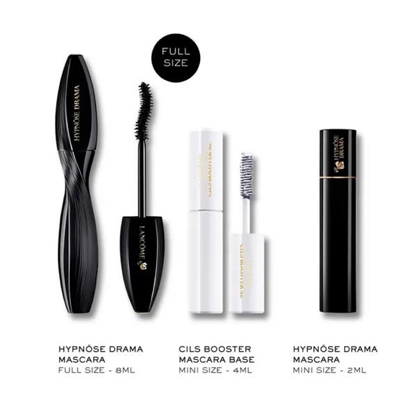 Introducing Lancôme’s Hypnôse Drama Mascara Set, featuring Hypnose Drama Mascara in full and travel size for instant, ultra-intense volume with deep black colour, and Cils Booster Mini Mascara Primer to lengthen, thicken and condition lashes while boosting the effect of your mascara.
