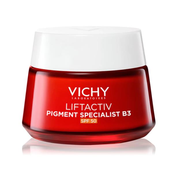 The impacts of ageing, pollution and UV light often lead to dark spots and wrinkles, as well as an uneven skin tone. The Vichy Liftactiv B3 Anti-Dark Spots intensive anti-wrinkle cream, enriched with niacinamide and the active ingredient LHA, corrects dark spots day by day and prevents them from reappearing. It hydrates the skin intensively, firms it and protects it against the effects of UV light thanks to SPF 50.