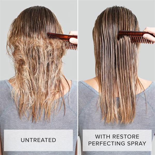 Create a polished finish with Living Proof Restore Perfecting Spray, a heat protection formula that aids detangling. Powered by the brand’s patented Healthy Hair Molecule to minimise breakage when wet combing, the weightless formula replenishes intense moisture to soften and smooth each strand whilst creating a natural shine. Offering protection against damage caused by heat styling and UV rays, the spray leaves hair looking and feeling healthy.