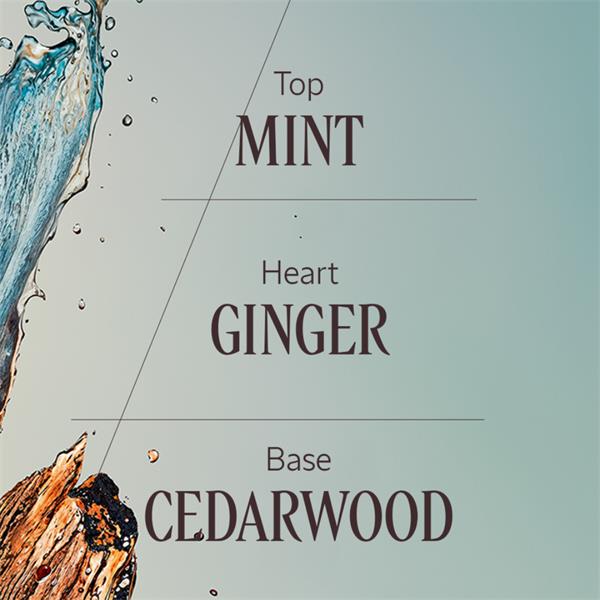 Sea air mingles with spice and warmth, moving through driftwood calm. Fresh mint and ginger rise like a breath of wind over sunlit cedar, their energy crisp and kinetic. It feels salt-clean and radiant, carrying quiet power and confident ease.