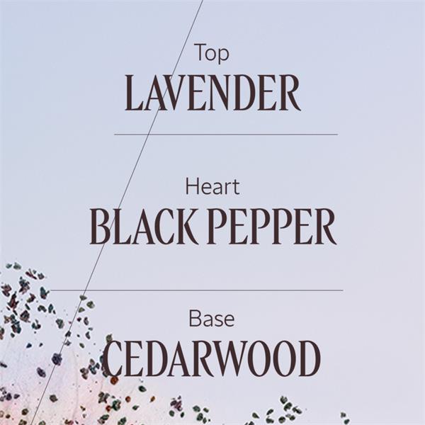 Lavender opens with aromatic freshness, lifted by cracked black pepper and softened by warm cedarwood. The scent feels crisp and effortless, clean yet comforting on the skin, carrying a quiet sophistication that’s timeless and assured, like a freshly pressed white shirt.