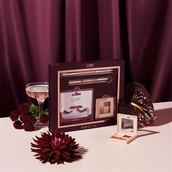 Enhance and protect your eyes with Midnight Glaze Eye Quad’s richly pigmented, Vitamin E–infused shades for multidimensional glow, and Lumnieyes Brown Kohl Pencil Duo for long-lasting, versatile definition and brightening.