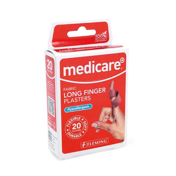 Medicare Fabric Long Finger Plasters are a comfortable and convenient way to keep finger wounds clean, ventilated and protected by providing long lasting, reliable adhesion. The plaster length is extra-long to cope with finger cuts and scrapes. The adhesive used on the Medicare Plasters is hypoallergenic, kind to skin, comfortable, and won’t irritate the skin. They have a strong adhesion and will protect the wound from contamination and infection whilst allowing it to breathe and heal quickly. The non-stick, extra absorbent, non-adherent pad ensures that the adhesive doesn’t stick to the wound, causing irritation.