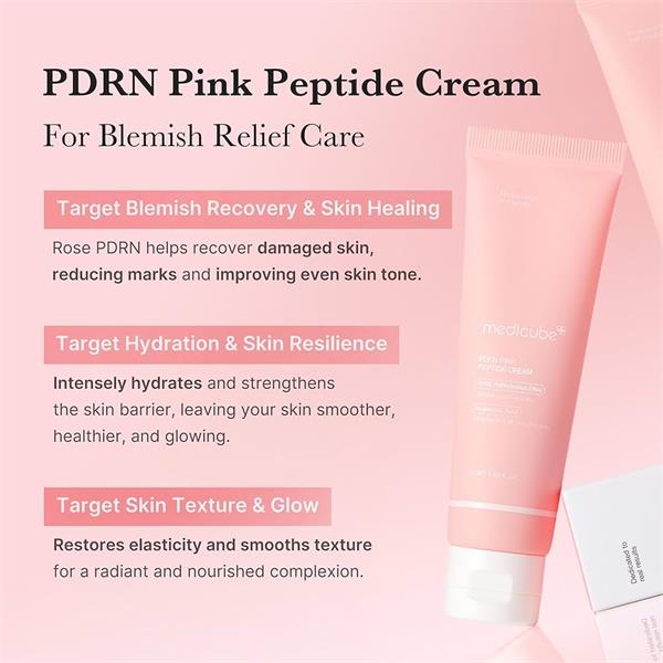 The Medicube PDRN Pink Hyaluronic Moisturizing Cream is a deeply hydrating and brightening moisturiser designed to replenish moisture, strengthen the skin barrier, and improve skin tone. Formulated with Niacinamide (2%), Salmon PDRN, and 10 layers of Hyaluronic Acid, this lightweight yet nourishing cream works to erase blemishes, even out skin tone, and lock in hydration for a plumper, healthier complexion