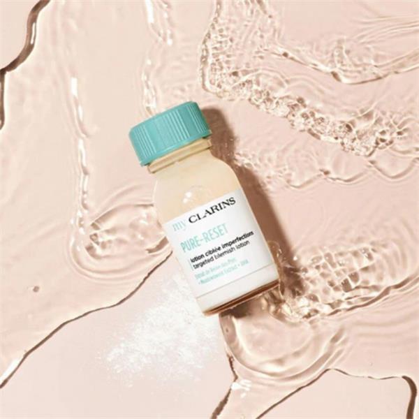 My Clarins PURE-RESET Targeted Blemish Lotion is a bi-phase solution that purifies and dries out blemishes.