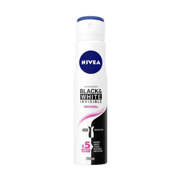 NIVEA Black & White Clear Original Anti-Perspirant Deodorant Spray is your go-to solution for protecting your clothes from stains.