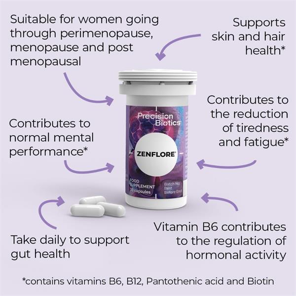 Precision Biotics have developed a unique formulation with this natural culture and specially selected B vitamins, to support mental performance and reduce fatigue. The B vitamins include Biotin, Folate, Niacin, Thiamine, Vitamin B6 and Vitamin B12 which all contribute to normal psychological function. Folate, Niacin, Pantothenic Acid, Riboflavin, Vitamin B6 and Vitamin B12 also contribute to the reduction of tiredness and fatigue. Zenflore is not a medicine and is not a substitute for any medication prescribed for you by your doctor. Do not discontinue any medication without consulting your doctor.