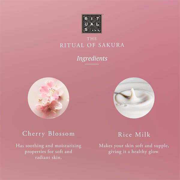 Powered by the delicate cherry blossom, derived from the Japanese Sakura tree, the fragrance creates a sweet yet feminine aroma. The scent is laced with nourishing rice milk to adorn the skin with supple moisture and a radiant-looking glow. Pair the fragrance with the rest of The Ritual of Sakura collection to leave a lingering, refreshing trail all day long.