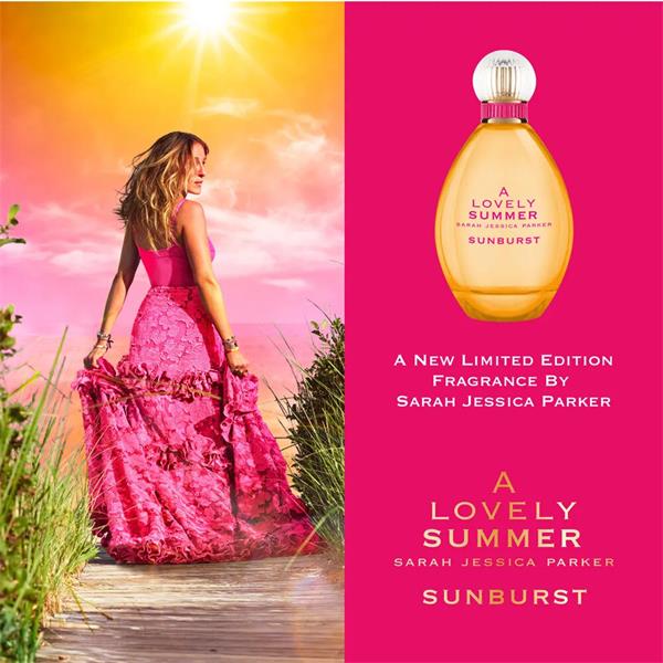Lovely Summer Sunburst by Sarah Jessica Parker is a Floral Woody Musk fragrance for women. This is a new fragrance. A Lovely Summer Sunburst was launched in 2025. Top notes are Mandarin, Orange and Neroli; middle notes are Iris, Jasmine and Lily-of-the-Valley; base notes are Musk, Cedarwood, Ambertonic and Skin.