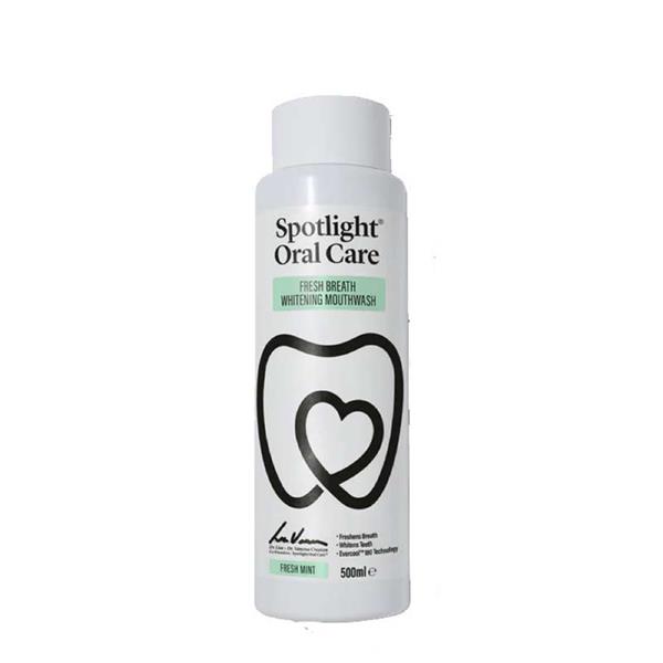 Spotlight Oral Care Fresh Breath Whitening Mouthwash works to provide fresh breath and whitened teeth. Developed using Evercool 180 Technology™, this advanced teeth whitening mouthwash formula ensures long-lasting fresh breath, prevents stain build-up, and protects against cavities. Use daily for a brighter, healthier smile that glows. Keep your teeth feeling as fresh as they look with this winning combination of breath freshening and teeth whitening ingredients.