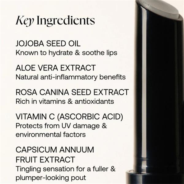 Nourishing formula - Powered by natural extracts and oils that work to hydrate and support moisture retention, resulting in fuller and plumper-looking lips