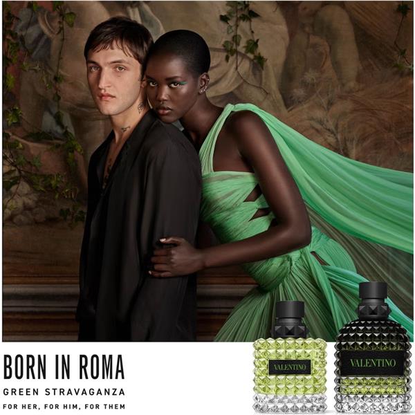 Discover the spicy-woody sensation of Valentino’s Born In Roma UOMO Green Eau de Toilette, a fougere fragrance characterised by its vibrant composition.