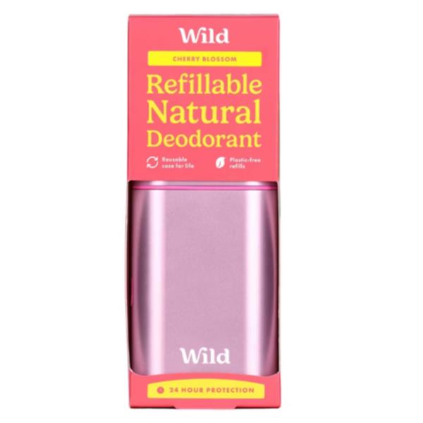 Wild Natural Deodorant Starter Pack in a chic Pink Case, features the delightful scent of Cherry Blossom. Elevate your daily routine with this refreshing, aluminium-free formula, crafted with natural ingredients for long-lasting freshness. This starter pack from Wild Deodorant may change the way you use deodorant forever.